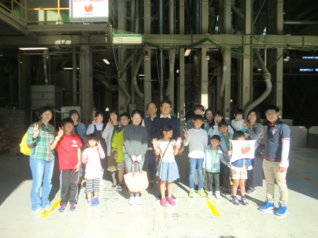 カントリーエレベーターで記念撮影。エフコープ指定産地の看板が輝いていました