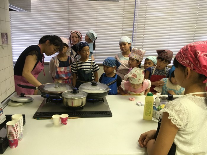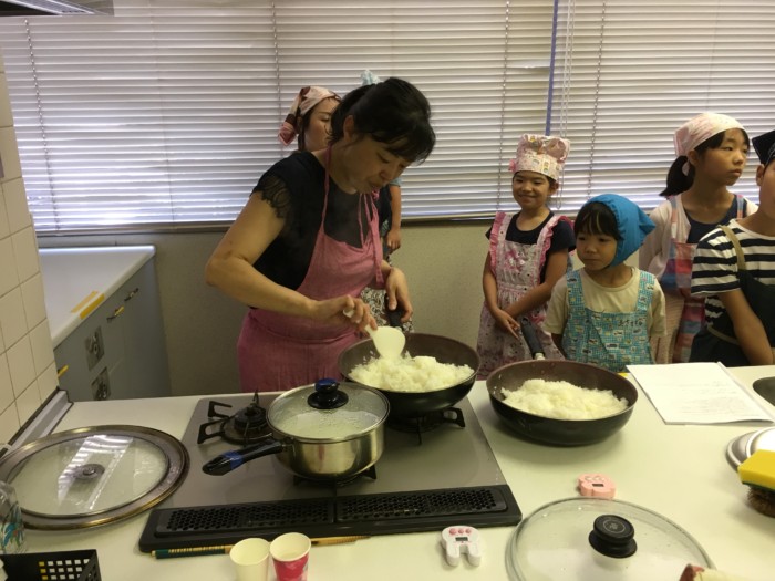当日は、だしのとり方やみそ玉づくり等を教えていただきました。ごはんは、鍋でおいしくごはんを炊く方法を参加された皆さんといっしょに楽しく学びました。
