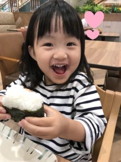 娘はごはんが大好きで、おかずよりもまず白飯です♪特に、おにぎりが大好きで、3~4個はぺろりです。ママ友との集まりにも、ラップに包んでおにぎりを持っていくので、みんなからは『さらちゃんと言えばおにぎりだよね~』とよく言われます(*^^*)