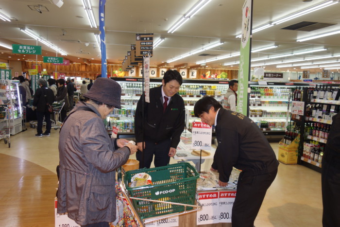 活動報告 2017年11月25日 会津こしひかりの生産者さんと餅つき 11月25日、来福された会津こしひかりの生産者の皆さんと、餅つきを行いました。 今回は、花畑店で餅つき、大野城店で試食販売です。 まずは、杵で潰してこねます 蒸しあがったもち米を よくこねて 粘りが出たらいよいよ 掛け声とともに、ついていきます(花畑店) ぺったんぺったん! きなこ❤️ 店内では、試食販売です 大野城店では、会津こしひかりが完売しました! 大野城店にて 花畑店にて 餅つき、試食販売にご協力いただいたみなさまありがとうございました。