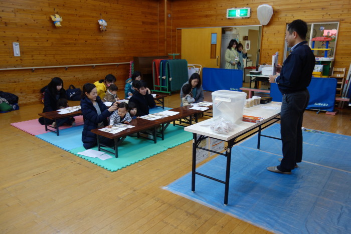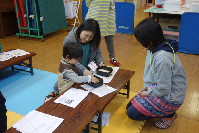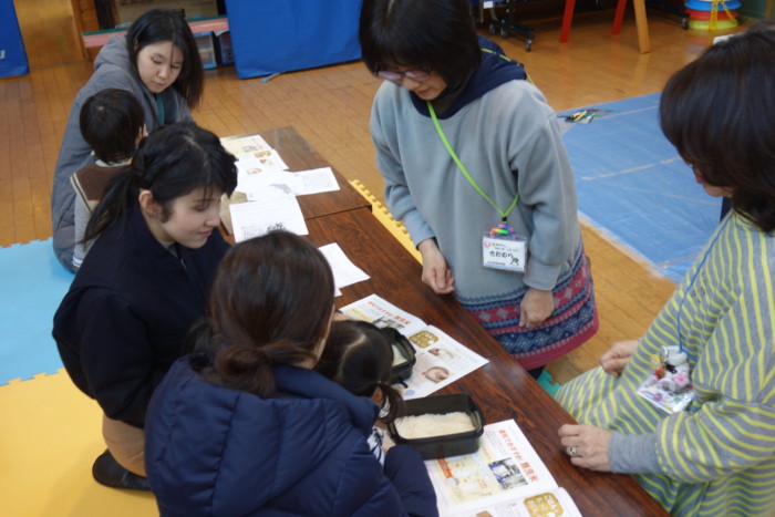 活動報告 2018年02月09日 西港支所配達エリア、小倉北区の中島児童館お米学習会に行って来ました 2月8日(木)、寒い中でしたが、子育て真っ最中のお母さん7人、元気な子どもたち7人に参加いただきました。 ライスセンターでの精米の過程、お米の保存方法、おいしいご飯の炊き方などの案内。 白米と無洗米の触り比べをしました。「無洗米の方が白いですね。」「無洗米の方が、サラサラつるつるしてる」等、やっぱり、直接、見て、触って感じるのがわかりやすい様子でした。 最後に、みなさんでご飯の食べ比べをしていただきました。今日の食べ比べは、全て無洗米で、「JA下関産きぬむすめ」「岩手県産ひとめぼれ」「福岡県産元気つくし」です。 品種によって、粘り・甘みなど、違いがわかって楽しいですね!と喜んでいただきました。 中島児童館のみなさま、お世話になりました。
