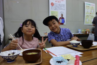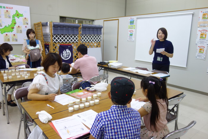 活動報告 2018年06月16日 ライスセンター見学と牛乳学習会 6月16日、ライスセンター見学と牛乳学習会を行いました。 まずは牛乳学習会🐄 名前を隠して飲み比べ これは何だろう? この6種類でした 次はライスセンターの工場内へ 玄米の入荷口 ご飯も2種類を食べ比べ どっちが好きかな? 最後は、石井食品さんの商品を試食しました みなさんぜひライスセンターの工場見学へお越しくださいね🍙