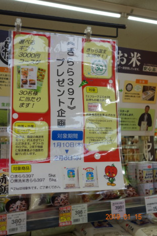 活動報告 2019年01月23日 舞松原店にて北海道産米きらら397の試食 1月15日(火)、新宮区域委員・店舗盛上げ隊の企画で、舞松原店・新宮店にてぜんざい会が行われました。 店舗では、1/10~2/6まで北海道産米『きらら397』のプレゼント企画を実施中です! 店頭とぜんざいのふるまい会場で、『きらら397』の一口サイズの試食とポケットティッシュをお渡ししながら情宣して来ました! 1/10~2/6まで《ぷるかカード》を使って、 きらら3975kg・無洗米きらら3975kg をご利用いただいた方の中から抽選で30名様に『選べるギフト3,000円コース』が当たります!! 北海道産米きらら397のご利用お待ちしております。