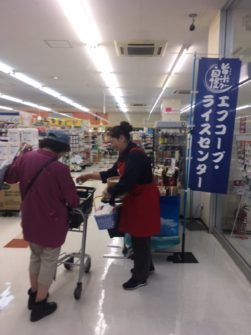 6月15日(土)、黒原店にて、ごはんの試食をしていただきました。当日は、あいにくの雨天にもかかわらず、《コープの感謝デー》で多くの来店がありました。