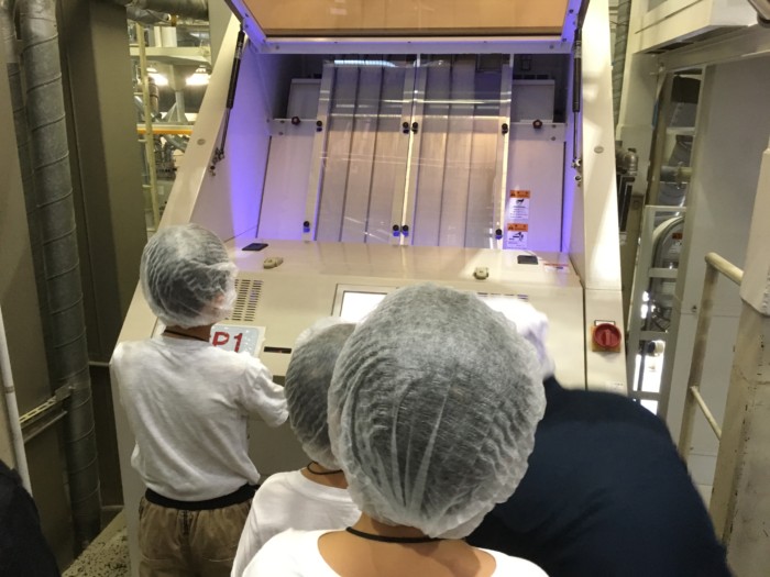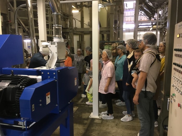 活動報告 2019年07月24日 新門司支所・大里区域委員会 工場見学 7月23日(火)、大里区域のみなさんが見学に来られました。 色彩選別機(マジックソーター):色のついたお米(カメムシがお米の粒を吸って黒く変色した粒など)を内部のカメラで検知し、風で吹き飛ばす機械です。 本日の食べ比べは、「胚芽精米・左側」と「元気つくし・右側」です。胚芽精米とは、胚芽部分が80%以上残っているものをいいます。ビタミンや食物繊維など、白米に比べて栄養が豊富です。 胚芽精米をはじめて食べられる方がほとんどでしたが、お子さんからも「おいしい」と好評でした。 大里区域のみなさん。暑い中、おつかれさまでした。見学いただきありがとうございます。