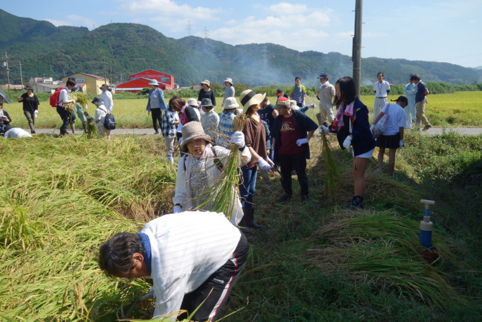 ホーム > 新着情報一覧 > 活動報告 > JA山口県きぬむすめ稲刈り体験バスツアー > 稲刈り⑤