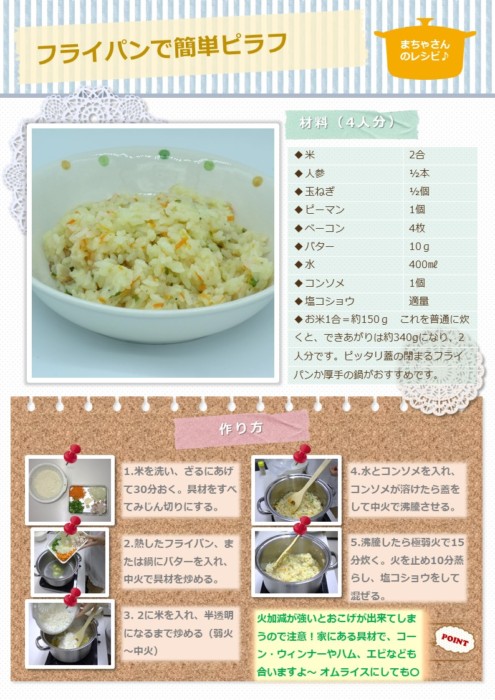 レシピ紹介① フライパンで簡単ピラフ