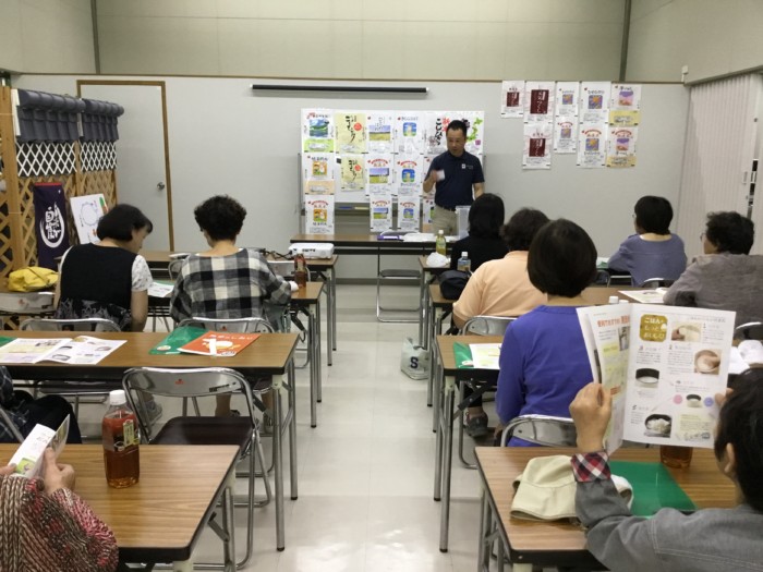 学習会の後、「新米こしひかり(熊本天草産)」と「福岡県産米ひのひかり」を食べ比べながら、コープダイニングのお弁当おかずを召し上がられました。