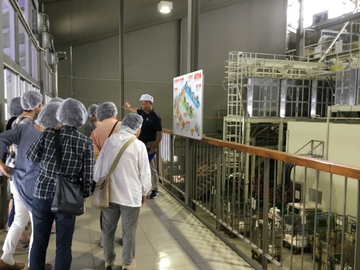 精米工場の見学スタートの様子。